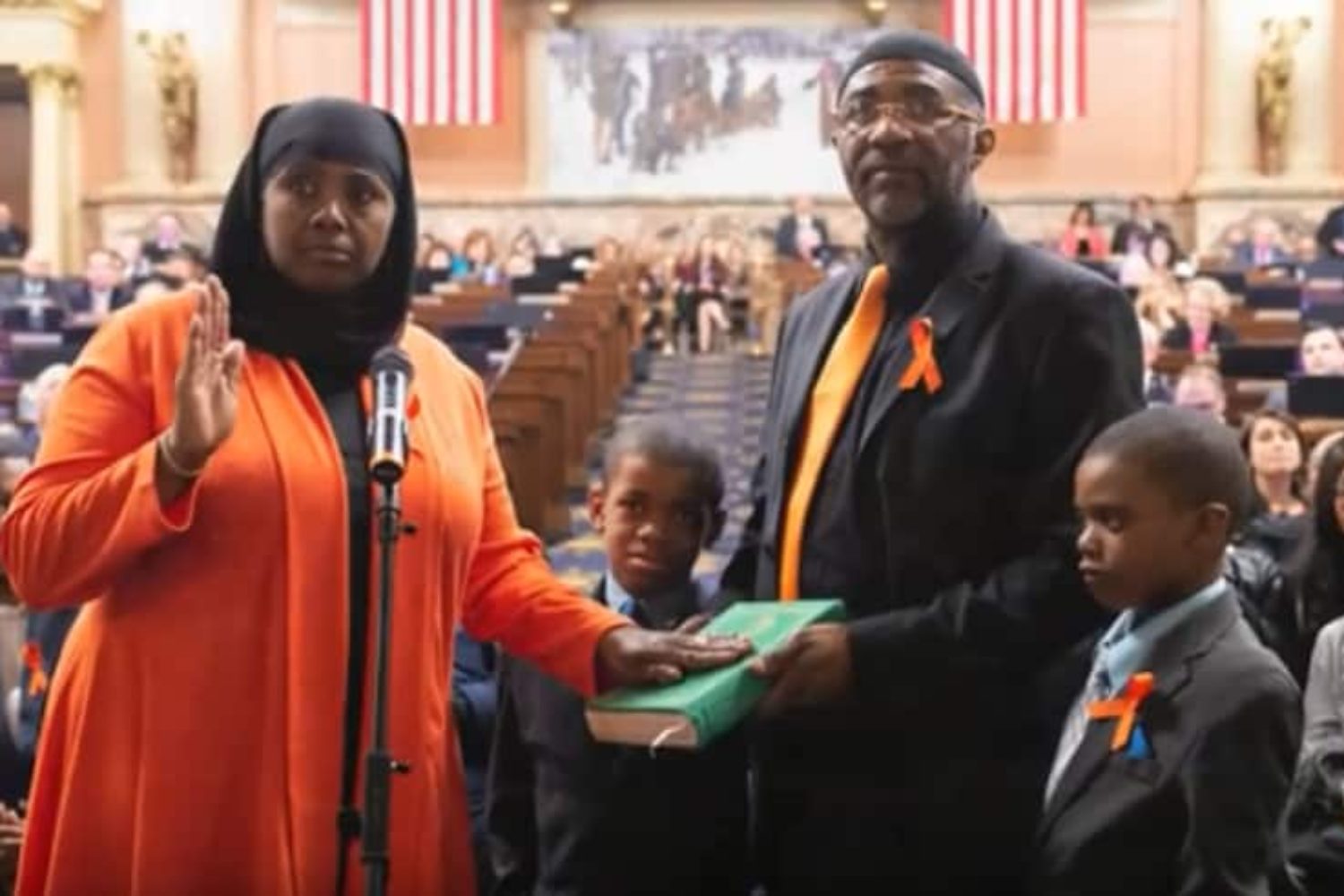 Johnson-Harrell brought with her 55 guests, all there to see her historic moment at the statehouse. Thirty-two of them were Muslim, she told local news outlets. She later called for the General Assembly to censure [name withheld].