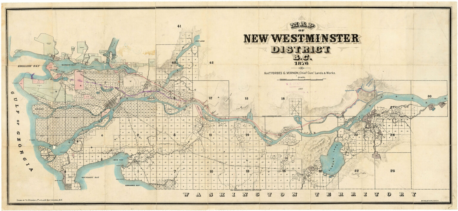 Sumas Lake, seen here in the bottom right quadrant of an early map, was one of the Lower Mainland’s most prominent geographical features before it was drained 100 years ago. 📷 City Vancouver Archives: AM1594-: MAP 2